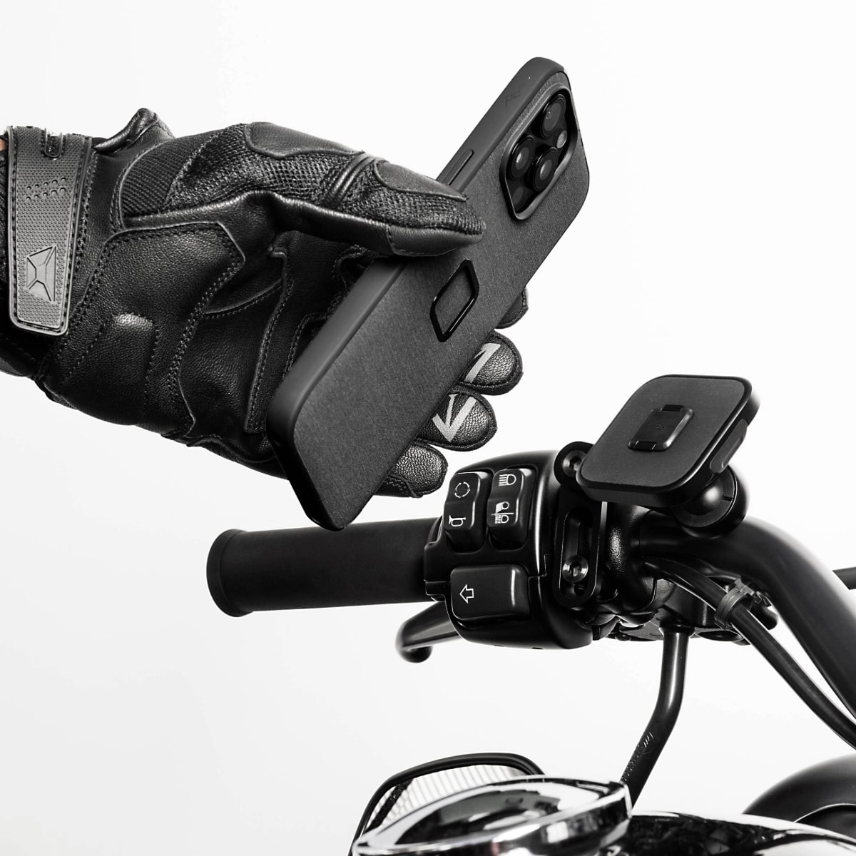 Niskoprofilowy uchwyt motocyklowy, który zapewni maksymalne bezpieczeństwo Twojego telefonu i zmniejszy bałagan na kierownicy.