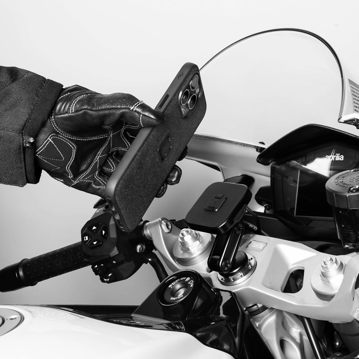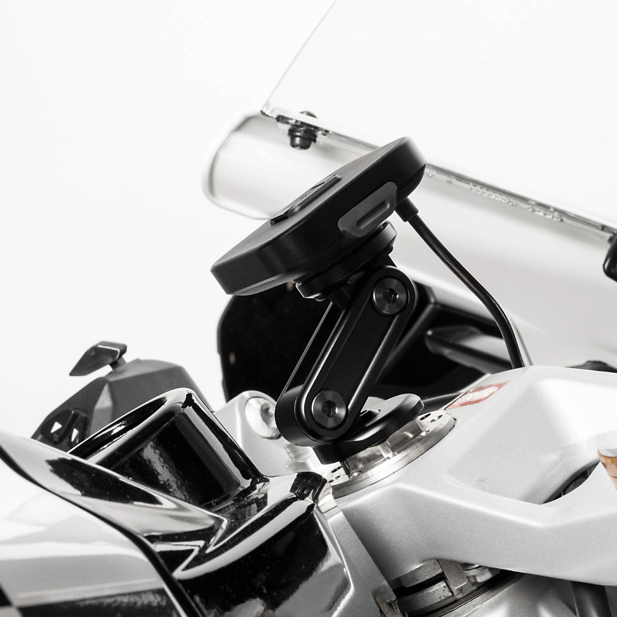 Idealny do motocykli sportowych i ulicznych z kierownicami typu clip-on, niskoprofilowy uchwyt na główkę ramy utrzymuje telefon mocno zamontowany, dobrze widoczny i łatwo dostępny. Bezpiecznie instaluje się w większości gwintów główki kierownicy za pomocą wtyczki rozszerzającej. Teraz również z bezprzewodowym ładowaniem Qi2!